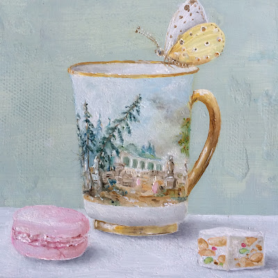 Et voila un nouveau Cabinet, empli de choses précieuses glanées un peu partout, translucides, chatoyantes, opaques ou nacrées, et une jolie de tasse Astier de Villatte avec son anse fleurie.